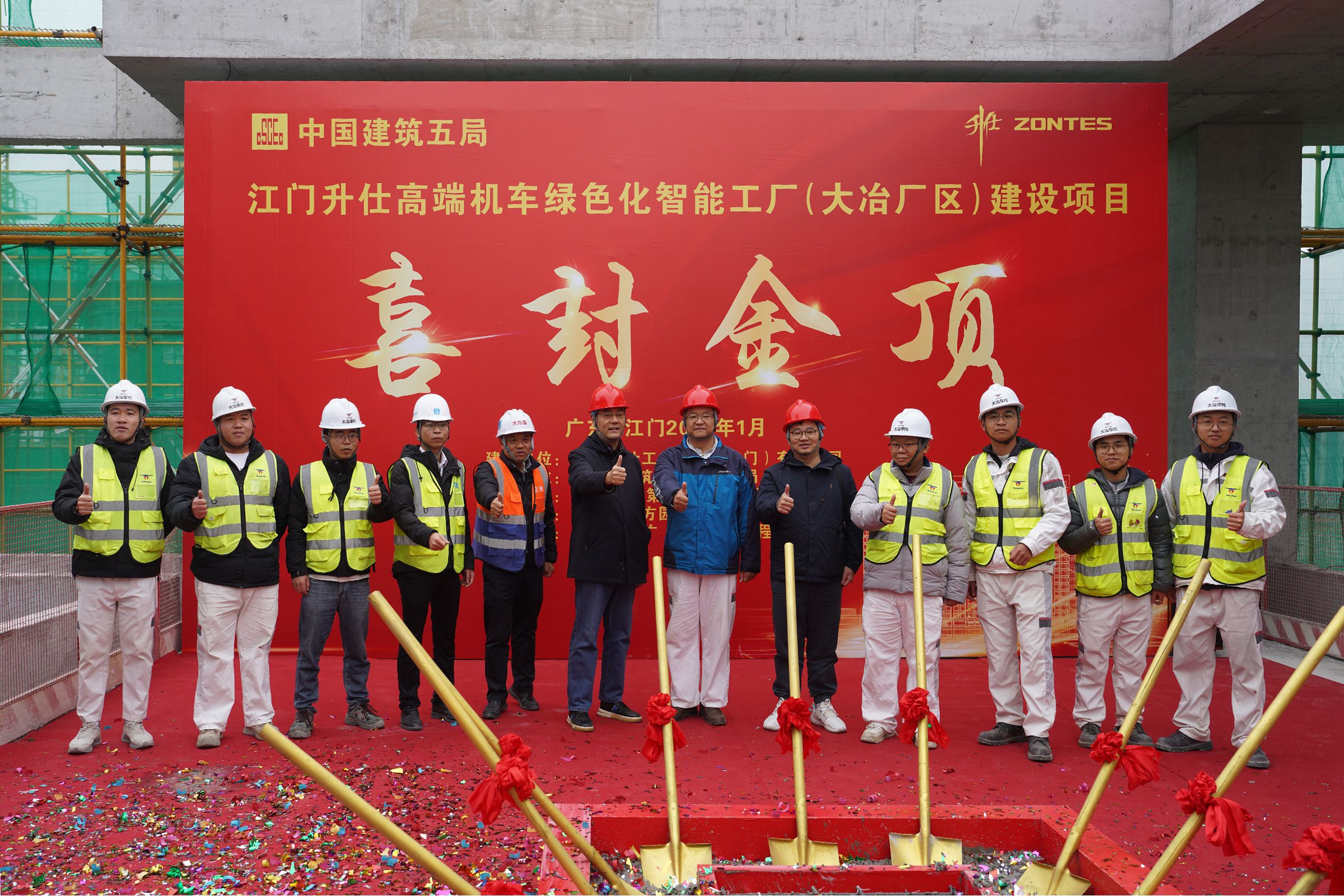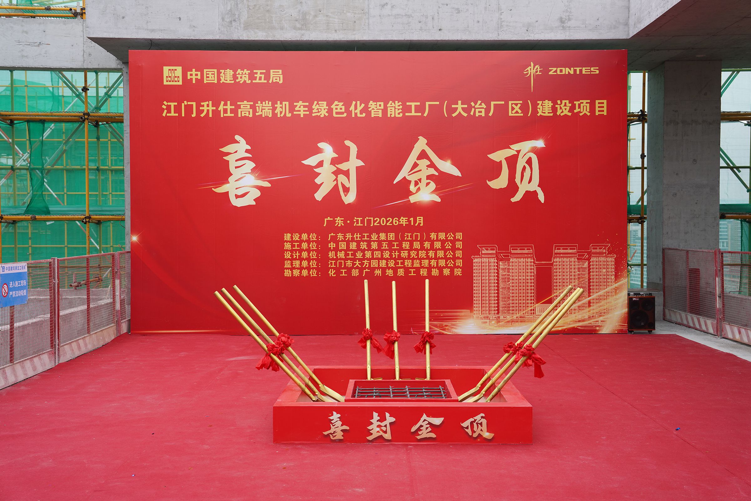 2026 年1 月23 日上午,广东大冶摩托车技术有限公司(以下简称“我司”)二期工业园迎来重要时刻——江门升仕高端机车绿色化智能工厂(大冶厂区)建设项目主体结构顺利封顶!