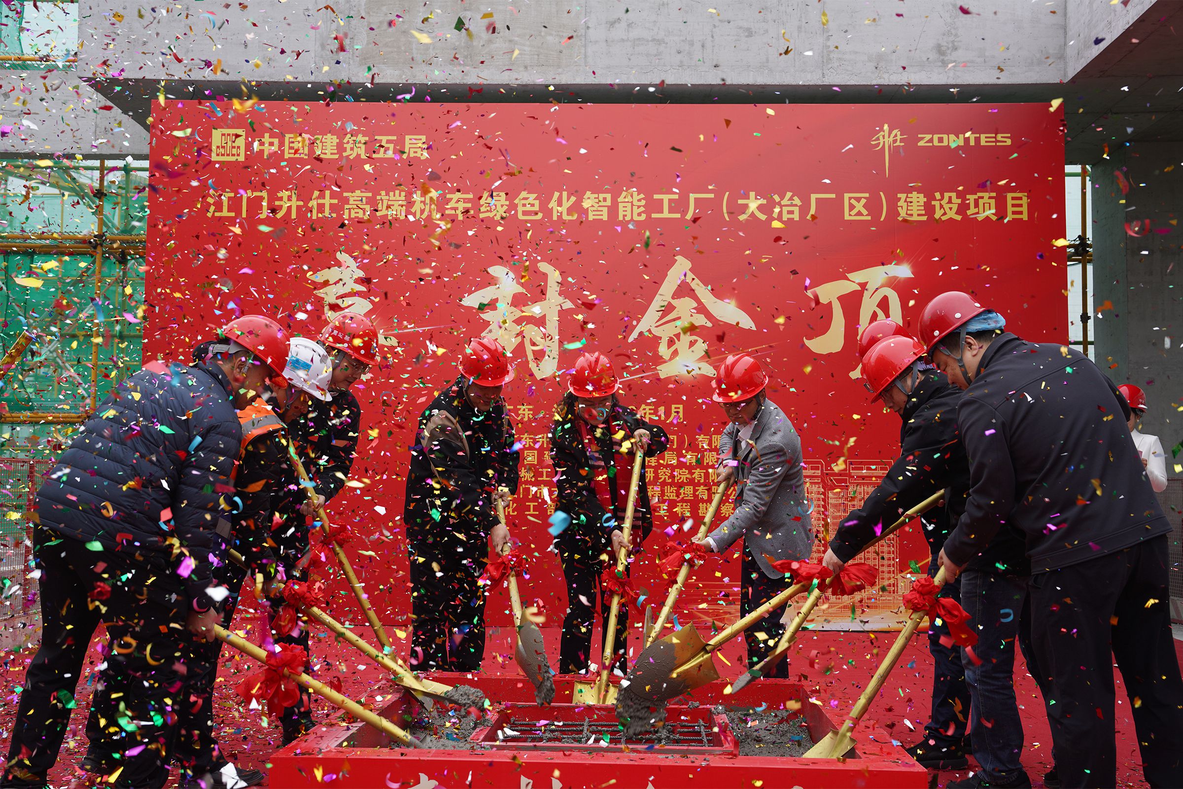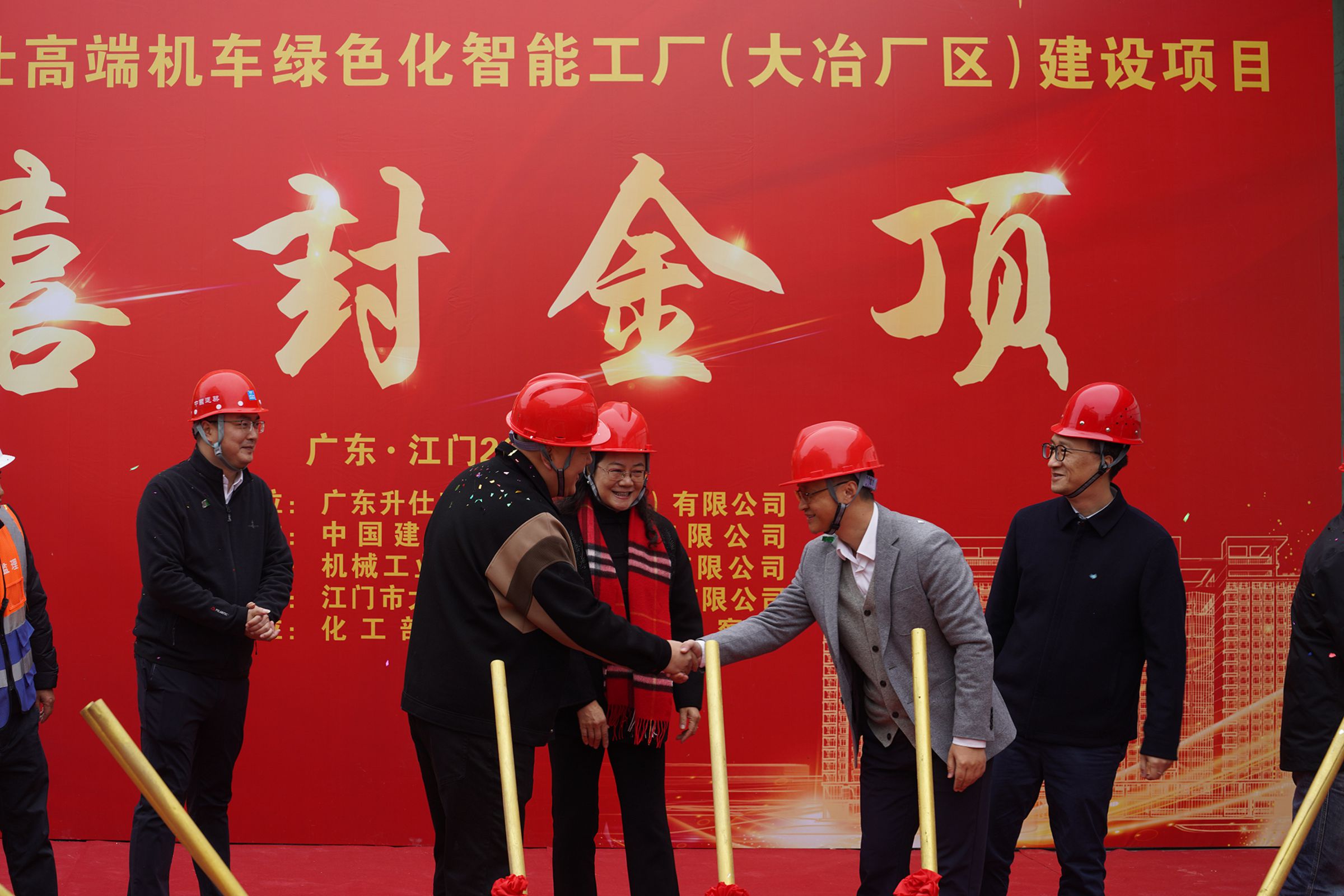 江门升仕高端机车绿色化智能工厂(大冶厂区)建设项目主体结构封顶仪式顺利举行!