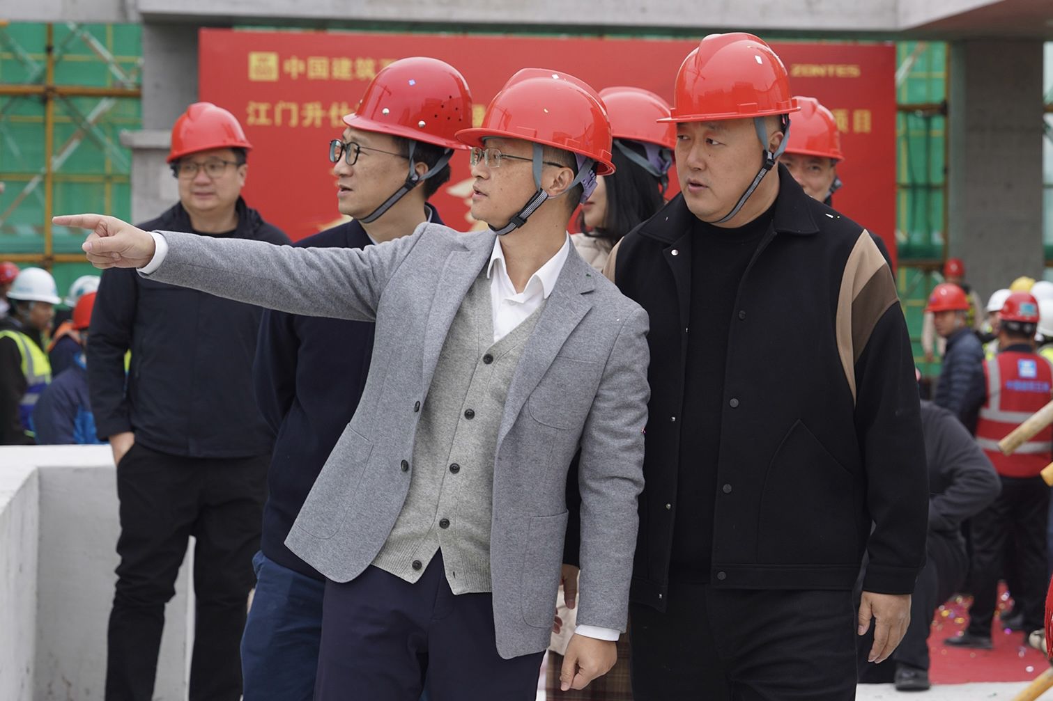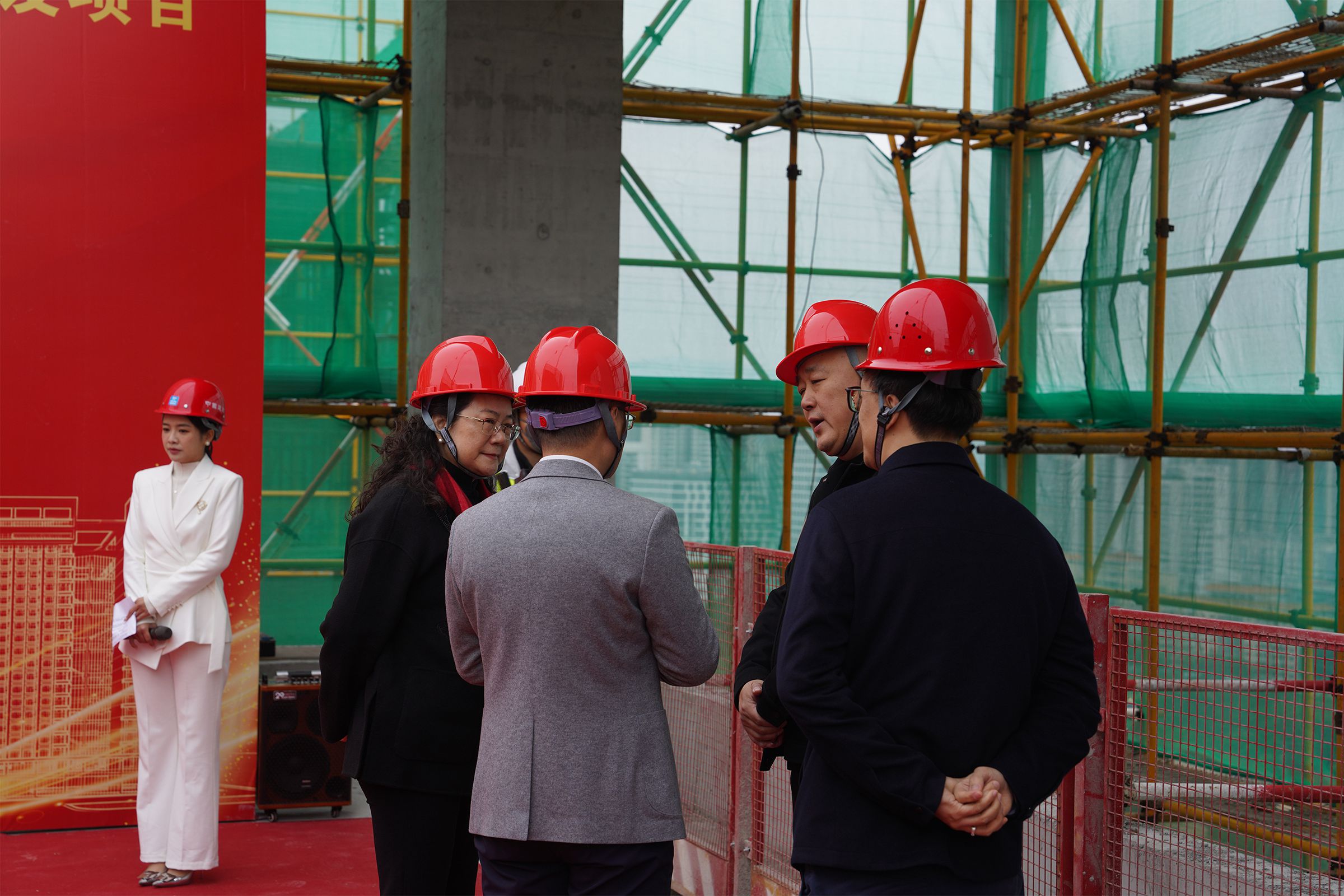 出席本次封顶仪式的领导与嘉宾包括:江门市政协党组成员、副主席汤惠红女士,江门市江海区委书记李捷先生,江门市江海区委常委、区委办公室主任熊伟光先生,广东大冶集 团董事总经理谢升先生,中建五局东莞分公司党委委员、副总经理卓林园先生,设计单位项目负责人陈波先生,监理单位项目负责人向罗坤先生,施工单位区域负责人昌郑先生,勘察单位项目负责人肖长立先生。