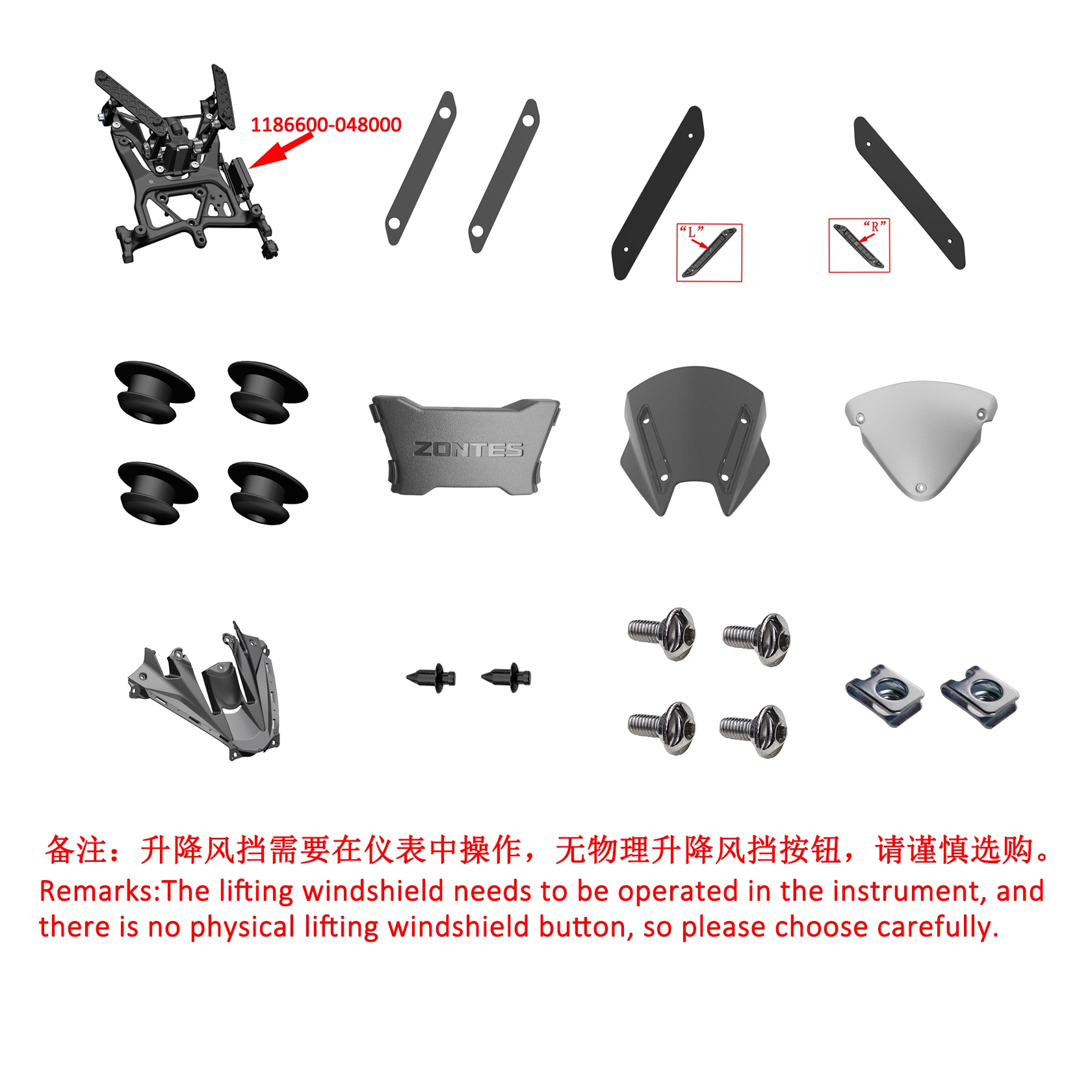 1. ZT368T-M铝合金头部支架上部中部部装总成(电动风挡改装专用/内梅花轴肩螺丝/MES)
